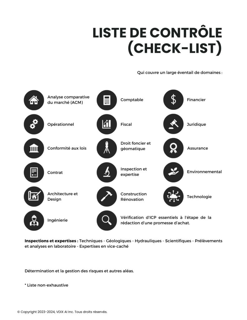 Dans ce contexte, le potentiel de la VDi est extraordinaire. Le pouvoir de transformer le processus et les obligations de vérification par l’adoption d’un processus de VDi détaillé et écrit, basé à partir d’un cadre de travail (Framework) doté d’une méthodologie, d’une cartographie, d’une liste de contrôle (Check-List) – VDi préliminaire et VDi détaillée, de même que de stratégies, est exponentiel et est le premier véritable maillon de la plus-value lors d’une transaction.