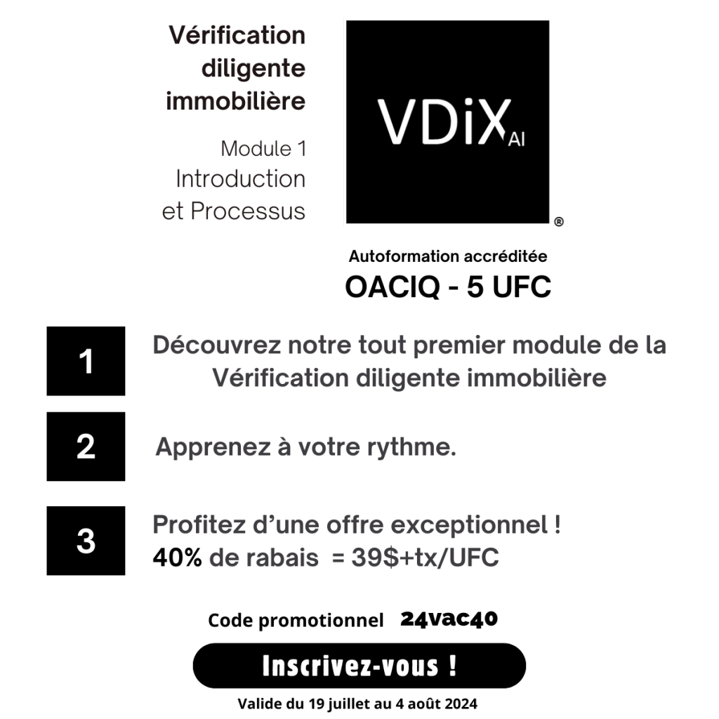 Pour Sylvain Tassé, Co-Fondateur & CEO de VDiX AI, la valeur ajoutée lors d’une transaction immobilière est de réduire les risques inhérents à une transaction immobilière par la réalisation d’une vérification diligente détaillée avec le processus VDiX AI, préférablement réalisée par un courtier et conseiller immobilier, appuyée sur un plan écrit, avec une gouvernance et des pratiques éprouvée, ainsi que la contribution de professionnels et d’experts, dont leurs applications collectives nécessitent précision, rigueur, discipline et cohérence.